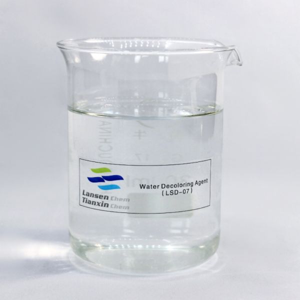 Water decoloring agent shall be diluted with 10-40 times water and then dosed into the waste water directly. After being mixed for several minutes, it can be precipitated or air-floated to become clear water.